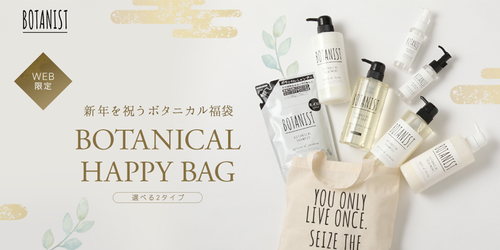 【期間限定】ボタニカルバスブランド「BOTANIST」より今年も福袋、「BOTANICAL HAPPY BAG」が登場いたします。ボタニカルなアイテムをぎゅっと詰め込んだ福袋は、2016年12月26日からの期間限定販売。ぜひ、ご家族やご自身で、新年を祝う素敵なボタニカルバスタイムをお楽しみください。