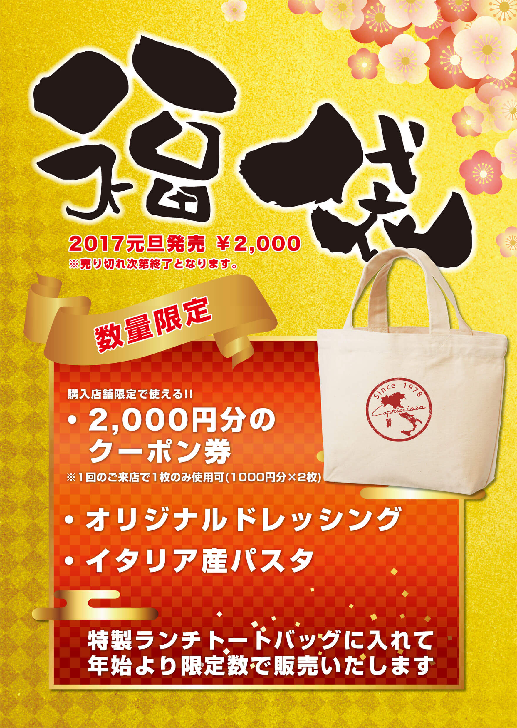 イタリア料理のレストラン「カプリチョーザ」から2017福袋が販売されます!!