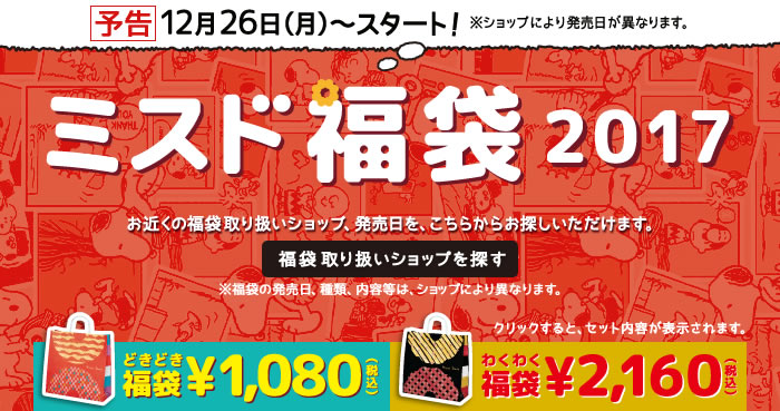 ドーナツ大好き!ミスタードーナッツの今年の福袋は、2,160円と1,080円の2種類が発売されます。発売は2016年12月26日(月)から。無くなり次第終了なのでドーナツ好きは早めの購入オススメします!!