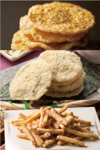 「江戸前海苔」と青のり類の中でも最も美味で香気がよいとされている「四国産すじ青のり」をふんだんに練り込み、 素材の味を引き立てる赤穂の塩で仕上げました。 豊かな磯の香りと程よい塩味がくせになる、 大人気「天ぷらせんべい」シリーズ第二弾です。