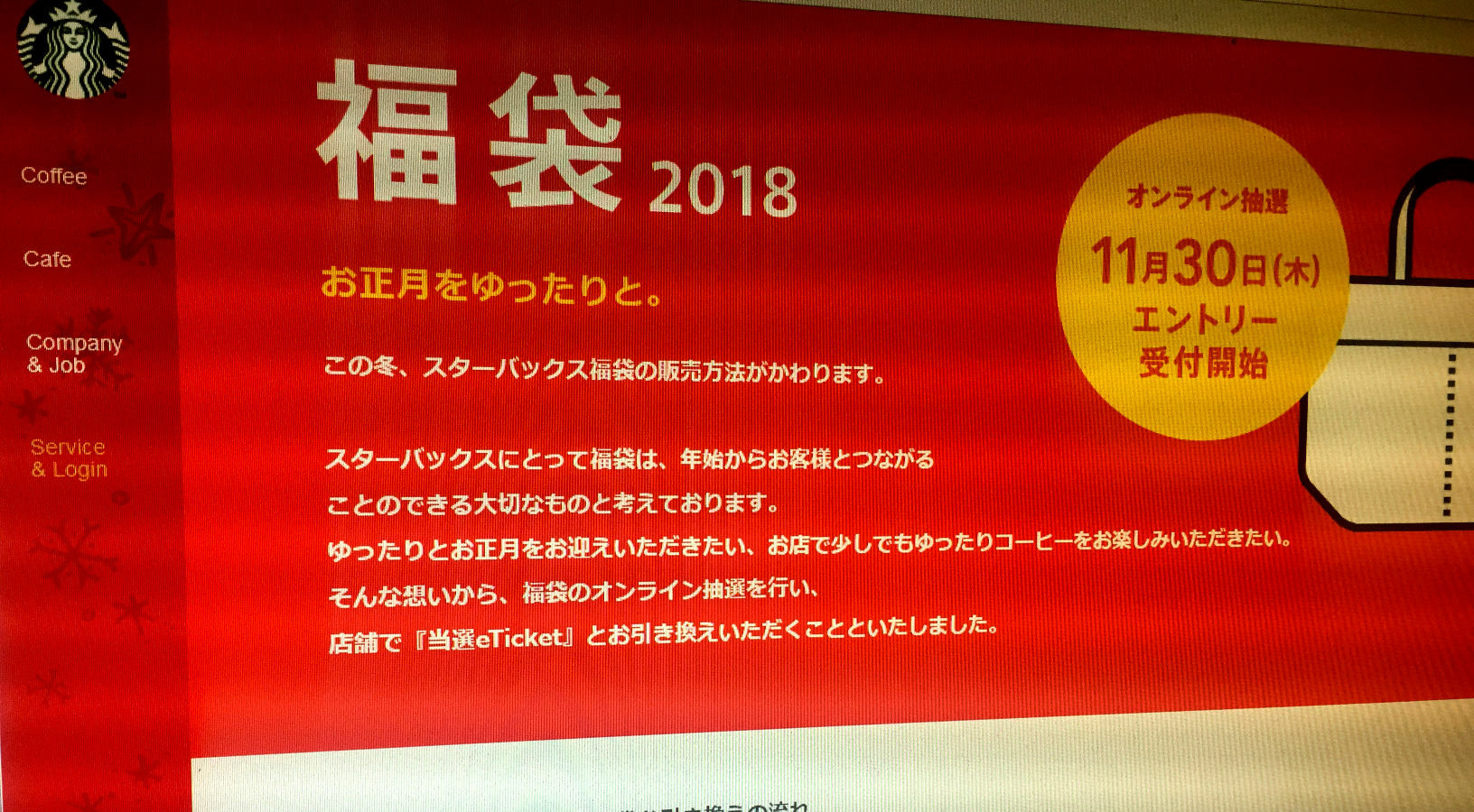 「お正月をゆったりと。」の言葉通り、今年からスターバックス福袋の販売方法がかわります。