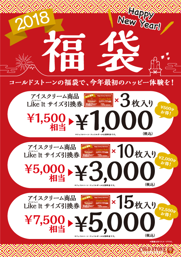 コールド・ストーン・クリーマリー・ジャパン株式会社は、2018年1月1日より「福袋」を限定店舗において数量限定で発売します。