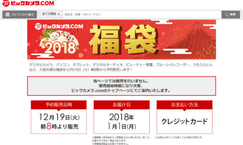 人気のビックカメラ福袋2018!お得な福袋が12月19日(火)朝8時から予約販売されます! 注文はビックカメラ.comのトップページからになります。事前にユーザー登録を済ませてから購入しよう!クレジットカードの用意も忘れ…
